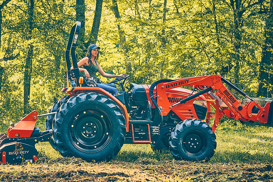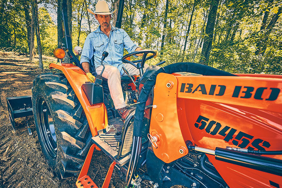 The Bad Boy 5045 Series Tractor one of the big dogs in the Bad Boy tractor line-up. Powered by a 48-horsepower engine with a loader lift capacity of 2700 lbs., this tractor is built to handle the any type of job. If it’s pulling power you want, this Bad Boy features differential lock, automatically equalizing power to both rear wheels. And you use our selectable 4-wheel drive to engage the front wheels and maximize traction and pulling power. The 5045 Tractor is Bad Boy performance, strength and lifting power, all in one orange package.